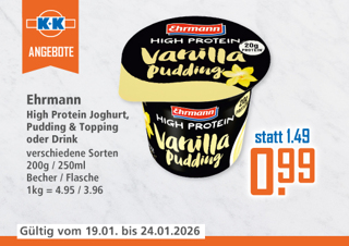 Jede Woche Spitzenpreise bei K+KEhrmann High Protein Joghurt, Pudding & Topping oder Drink - verschiedene Sorten