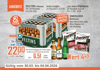 Spitzenpreise bei K+KZwei Kisten Pilsener, Helles Lager oder Helles Pülleken + Gratis Zugaben