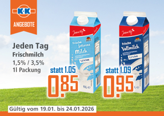 Jede Woche neue AngeboteJeden Tag Frischmilch 1l Packung - 1,5% / 3,5%