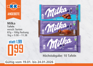 Spitzenpreise bei K+KMilka Tafeln - verschiedene Sorten 87g - 100g Packung