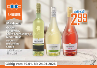 Spitzenpreise bei K+KMaybach Grauer Burgunder, Secco Chardonnay & Merlot Rosé - 0,75l Flaschen
